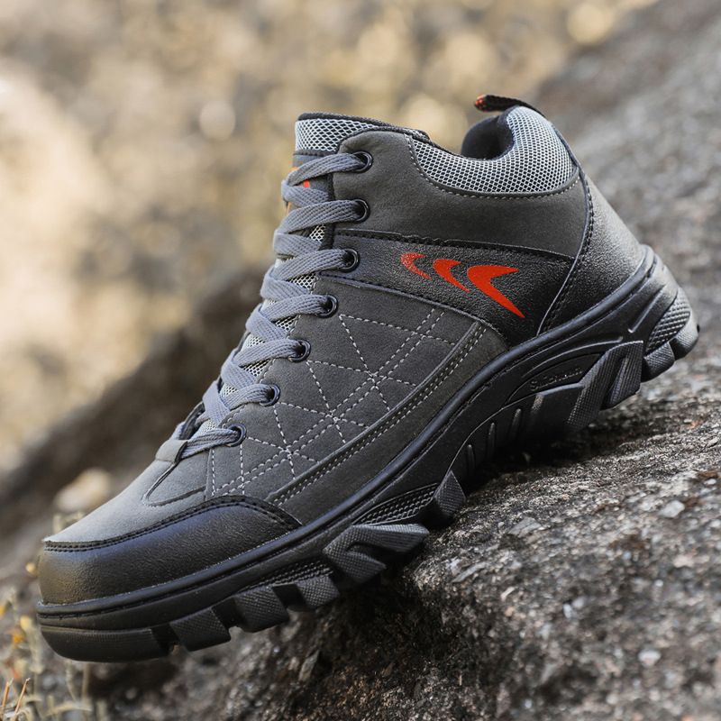 【硬核裝備】中幫繫帶耐髒戶外登山男鞋【灰色】一雙