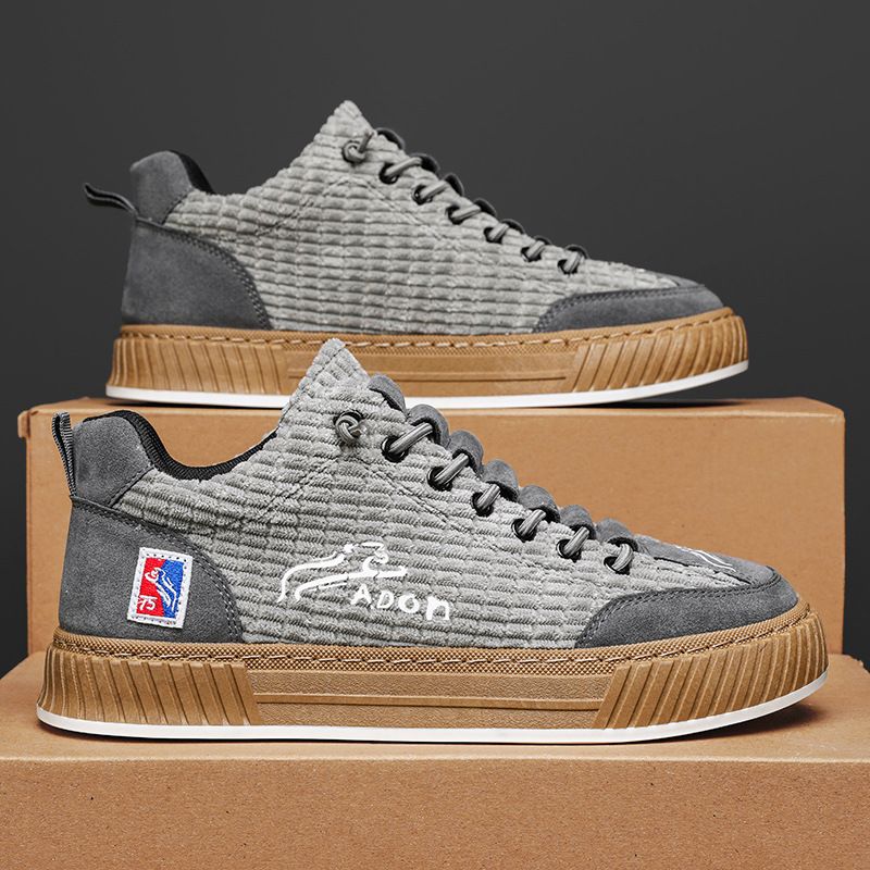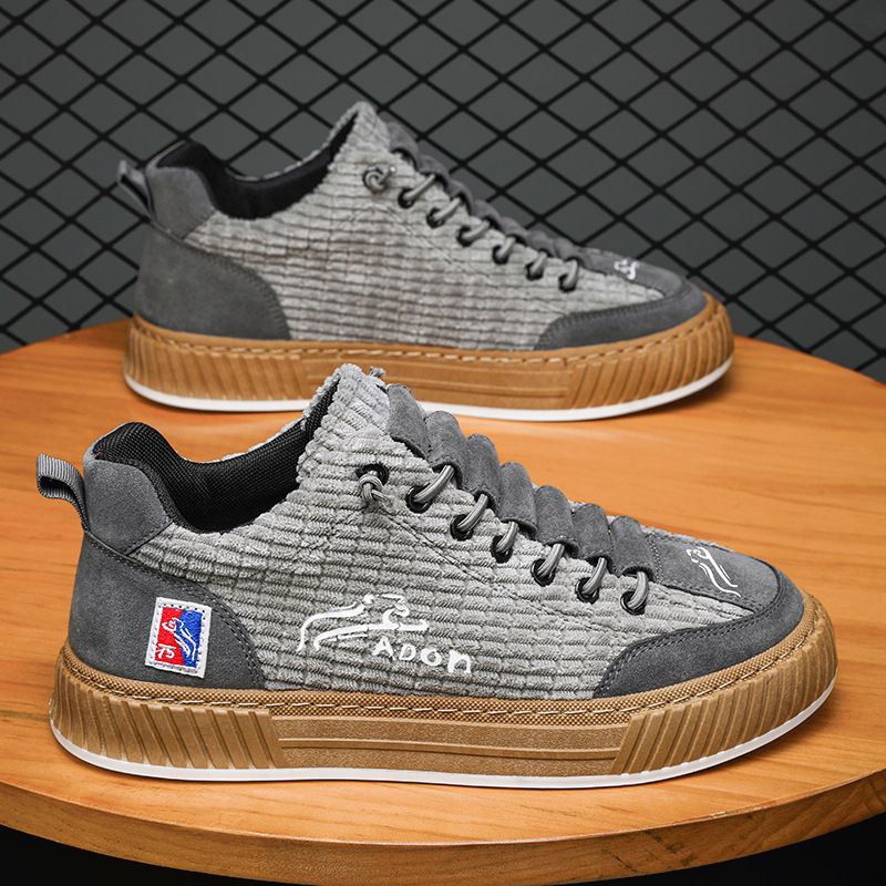 秋季高檔男士燈芯絨百搭軟底板鞋【灰色】一雙