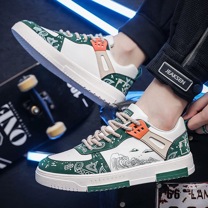 【朝氣蓬勃!】男士透氣百搭休閒板鞋【綠色】一雙