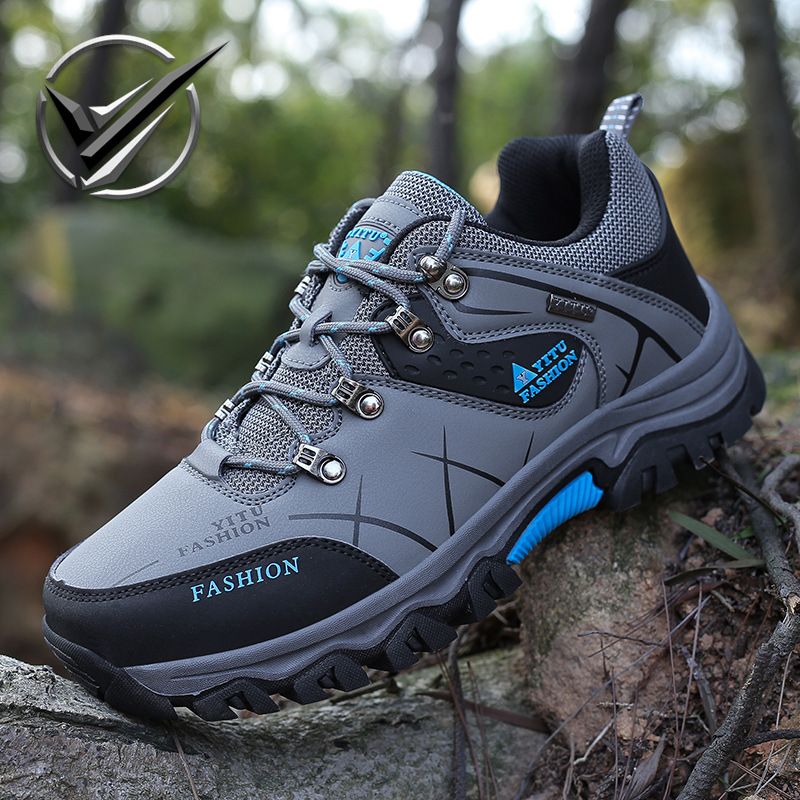 【回購率90%!!!】秋冬男士大碼低幫輕便防滑耐磨越野鞋【灰色】一雙