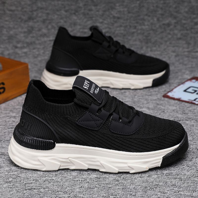【無拘無束!】大碼春秋透氣針織男運動鞋【黑色】一雙